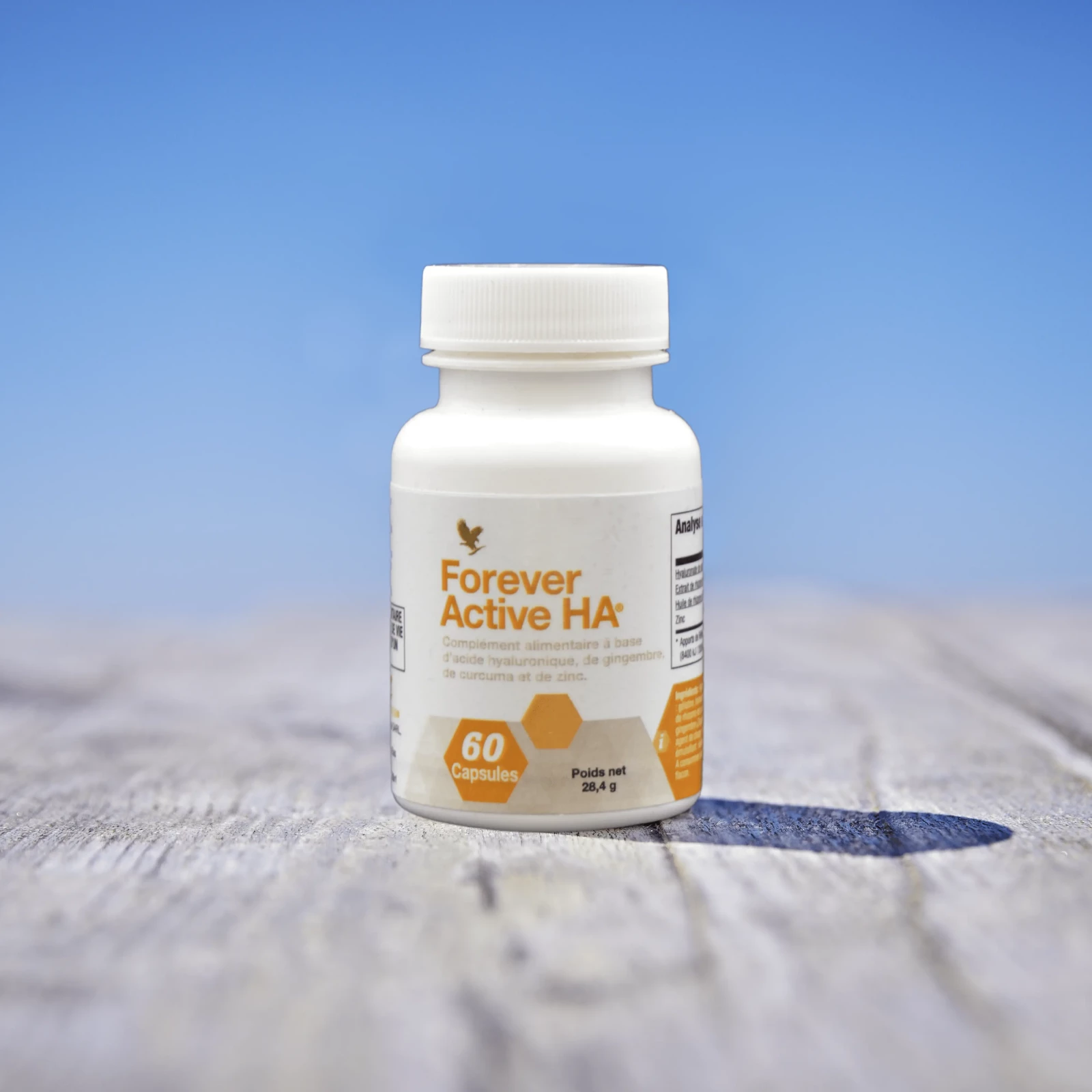 Forever Active HA™ est un complément alimentaire à base d’acide hyaluronique, de gingembre, de curcuma et de zinc. L’acide hyaluronique (HA) est notamment présent dans le cartilage des articulations. Grâce à une technologie de fractionnement enzymatique (dite injuv®) les molécules d’HA sont fractionnées en fragments assimilables par voie orale.