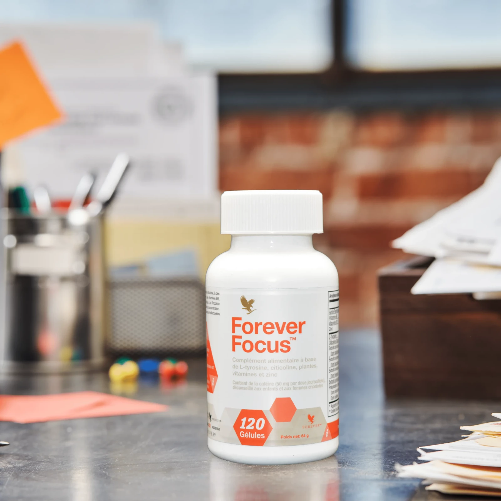 Forever Focus vous offre une association exclusive et innovante d’actifs brevetés et testés scientifiquement pour optimiser la concentration, la mémoire et augmenter la vigilance.